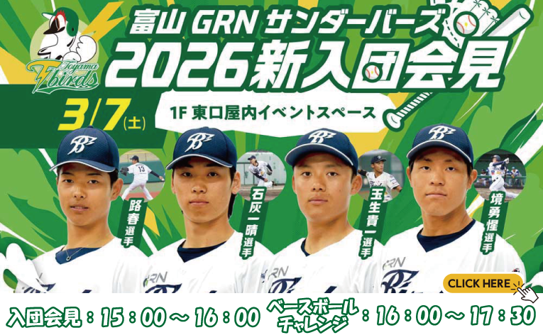 2026年3月7日(土)三井アウトレットパーク北陸小矢部にて 富山GRNサンダーバーズ 2026新入団会見!!