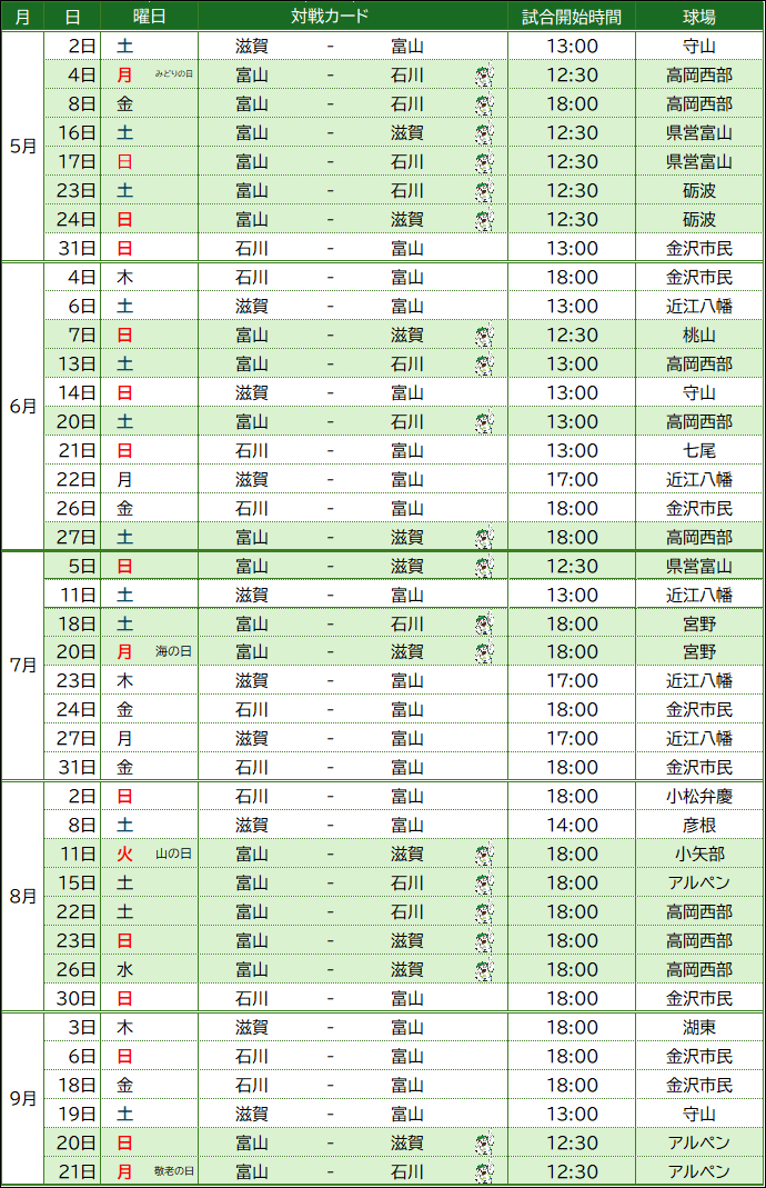 2026シーズン 試合日程